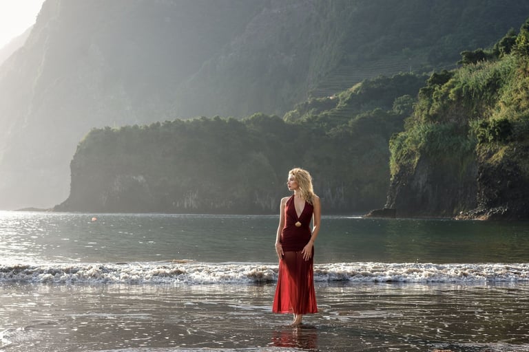 Experience dramatic sunsets and volcanic cliffs at Seixal Beach is perfect for family and lifestyle photoshoots in Madeira.
